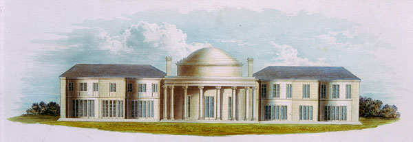 The Prince of Wales first residence built in 1787, the ‘Marine Pavilion’ was a building of simple classical design with a central rotunda with north and south wings. This building would form the core of the present Pavilion and is represented by the existing Saloon, North Drawing Room and South Drawing Room. The Saloon a circular room had a small shallow dome with classical statues supported on Ionic columns on the exterior. The Prince spent a number of summers and winters here occupying his time hunting, racing and entertaining his friends.