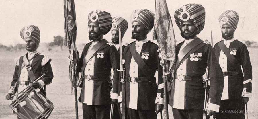 Emblems used by Sikhs in various military units that may have influenced the development of the modern khanda design.