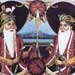 The front piece of this book contains a painting of the Sikh Gurus. On the alter of Sri Guru Granth Sahib appears a chakkar quoit with a central khanda sword and two modern kirpans on either side with blades facing inwards.