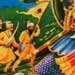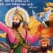 A modern khanda emblem can be seen prominently on Baba Deep Singhs turban, but in the background there is a Nishan Sahib with other symbols.