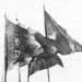 A Sikh procession with their Nishan Sahibs marches to protest during a campaign for greater Sikh control over their religious places of worship in Punjab under British rule.