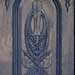Similar to the weapons found on older Nishan Sahibs, a dhal shield with curved sword can be seen to the right of the bird. To the immediate right of the Guru can be seen be seen the handle of a katar dagger with its two arms and cross braces clearly visible.