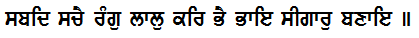 sabadh sachai ra(n)g laal kar bhai bhaae seegaar banaae ||