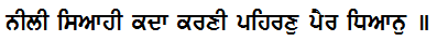 neelee siaahee kadhaa karanee pehiran pair dhhiaan ||