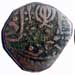An unusual khanda like symbol appears on this Sikh paisa. Copper paisas were in much wider circulation than silver rupees and this symbol has not been seen on other paisas from the era. The symbol appears on the edge of the coin with its top edge missing. It is not clear if the outer edges of the two curved lines end, as they do in a khanda symbol or if they continue and join to form an outer circle around an inner circle. Some have suggested that the symbol may represent a stylized lotus flower, something seen on other Sikh coins.