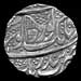 A rupee from the Sikh Empire province of Kashmir featuring a checkered weave banner.