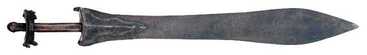 A very rare surviving Chola dynasty sword. It has a shape that is similar to the central vertical element of the trident depicted in the two Chola Shiva sculptures.