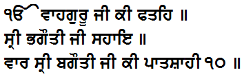 Vaar Sree Bhagautee jee kee Paat'shaahee D'assveen