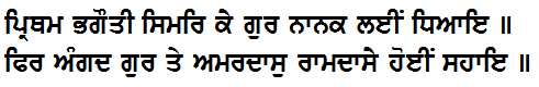 Pritham Bhagat'ee simar kaae Guroo Nanak laeen’ D'hiaa-ae.
