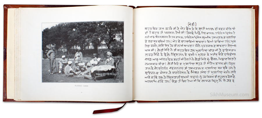In mid-February 1916 as the Indian soldiers left Brighton they were presented with a commemorative book entitled ‘A Short History in English, Gurmukhi & Urdu of the Royal Pavilion Brighton and a Description of it as A Hospital for Indian Soldiers. Much more than just a simple souvenir, this book was considered of vital strategic importance as a propaganda piece for the British Government.