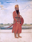 Ranjit Singh was quickly on the back of his steed, his shield at back, his like a common Sikh, and his face half hidden by the lower part of the turban which was wrapped over his chin. (Hugel, 1845) [4]