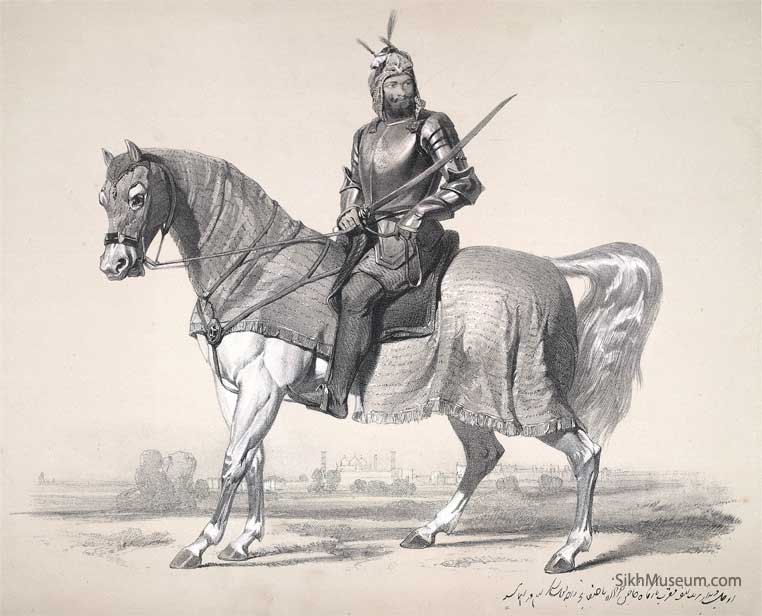 Earlier images of Sikh cavalry as well as earlier accounts mention the wearing of turbans rather than helmets. Doctor Murray a British physician wrote the following in a letter dated January 1, 1827 to Captain Wade, the British resident at Ludhiana: