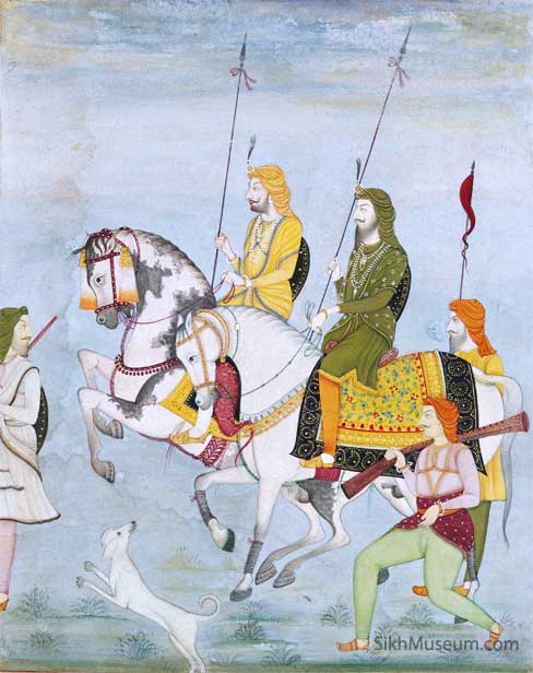 On the 17th (28th May 1838 A.D.) 200 horsemen of the Ghorchara Khas stood well-equipped and well-dressed in brocade, with gold and silver saddles and gold-threaded skull caps. The Maharaja inspected them one by one separately and ordered the Raja Kalan to establish them on both sides outside the special portico on the arrival of the glorious Sahibs so that they might feel pleased to see their garments, their horses and their fine armour. [6]