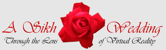 The Giani (a learned religious scholar) sitting at the alter can be seen reading the Lavan hymn from Sri Guru Granth Sahib which is composed of four stanzas. As the Giani reads each stanza, three Ragis (Sikh musicians) seen sitting on the side of Sri Guru Granth Sahib on a low stage then sing the Lavan stanza, Music is an integral part of Sikh worship and Sri Guru Granth Sahib is a poetical scripture containing detailed musical notations. As the Ragis sing the Lavan the couple completes a circular walk around Sri Guru Granth Sahib. The groom leads the walk while both the bride and groom hold the palla sash between them and then seat themselves at the same spot. The couple will repeat their walk around Sri Guru Granth Sahib three more times with each remaining stanza of the Lawan wedding hymn to solemnize their marriage.© Copyright 2011 SikhMuseum.com. All Rights Reserved