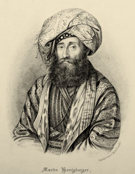 As an instance of the fanaticism of the Nahungs ( the robber-pack I have before mentioned ), I may relate an occurrence which took place at Umritsir, in which a German friend of mine, Herr August Schofft, was near losing his life by their fury. This gentleman is an artist of some celebrity ( at this time in St. Petersburg ), and he, accompanied by his lady, visited the East Indian Presidencies shortly before my severe illness ; and having met with great success in consequence of his skill in oil painting, he came to visit me at Lahore, At this time the court happened to be at Umritsir, and I received an order from Sheer Sing to present myself at that place with my guest. On our arrival, it happened that one of the principal Sikh priests, named Baii Goormuck Sing, was present, and the maharajah desired Herr Schofft to furnish him with a specimen of his abilities, by sketching a portrait of the Baii ; which he accordingly did, in pencil, and the likeness was a striking one. The result was, that the maharajah and several of the principal persons of the court sat to him for their portraits, and Herr Schofft accordingly met with great respect and consideration.